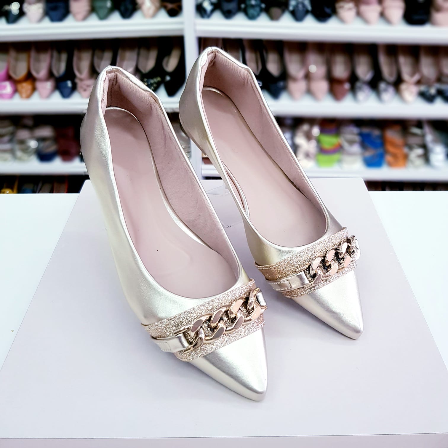 Sapatilha bico fino Dourada com detalhe