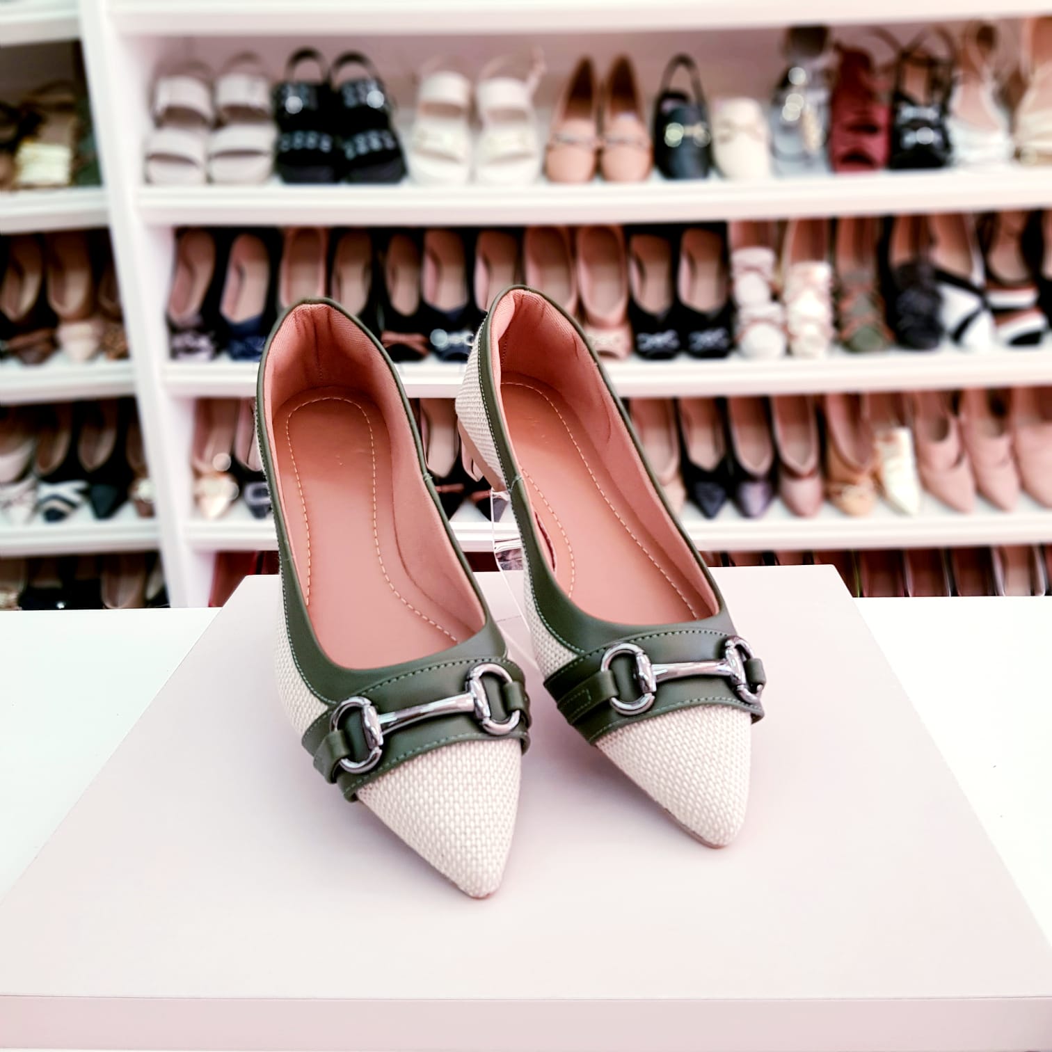 Sapatilha bico fino Juta com detalhe verde