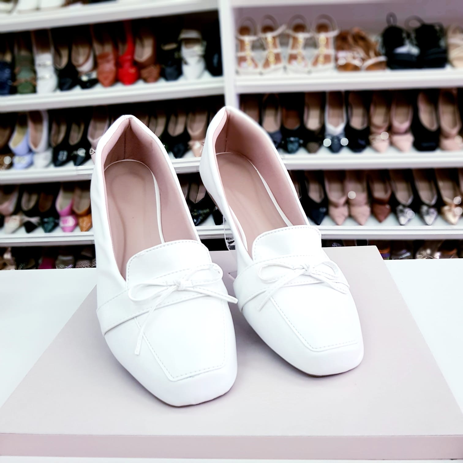 Sapatilha Mocassim Bico Quadrado Branca tamanho especial